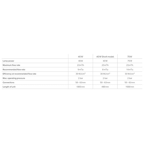 UV-C radiation neutralizes bacteria, viruses and other organisms and stops them from multiplying. Can reduce the use of chlorine and other chemicals by up to 80%. No risk of overdose.